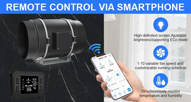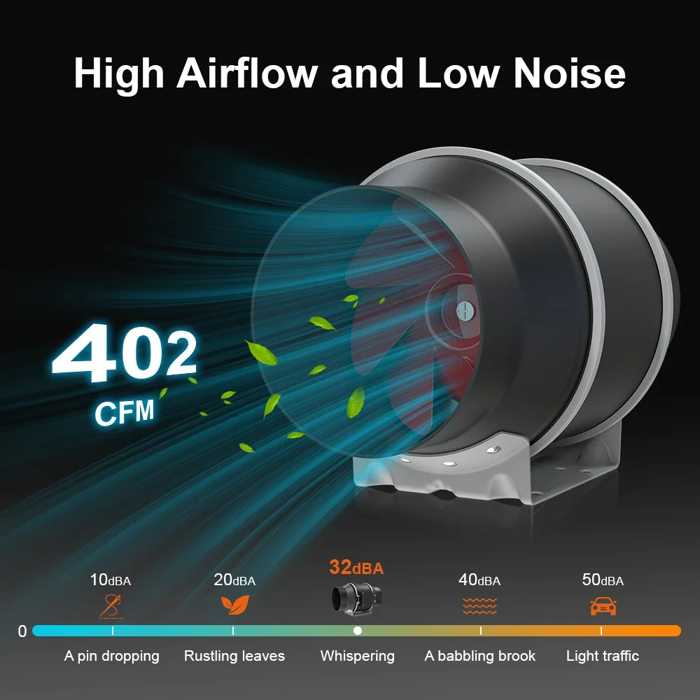 【Powerful Inline Fan】: Mixed flow design combined with a EC motor ensure truly energy efficient, with only 62 watts of power but gives a strong airflow up to 402 CFM. Lightweight ABS blades reduce the airflow resistance, add airflow by 40%. 【Temperature Regulation】: Proper ventilation helps maintain optimal temperatures within the grow space. Plants have specific temperature requirements for growth and flowering. Ventilation systems can expel hot air generated by lights or equipment and bring in cooler air from outside or from a separate cooling system, helping to regulate temperatures. 【Humidity Control】: Controlling humidity levels is essential for preventing mold, mildew, and other moisture-related issues. Ventilation systems can remove excess moisture from the air, especially during the flowering stage when plants are more susceptible to mold. 【Odor Control】: Some plants, can produce strong odors during flowering. Ventilation systems equipped with carbon filters can help remove these odors, preventing them from escaping the grow room and causing disturbances.