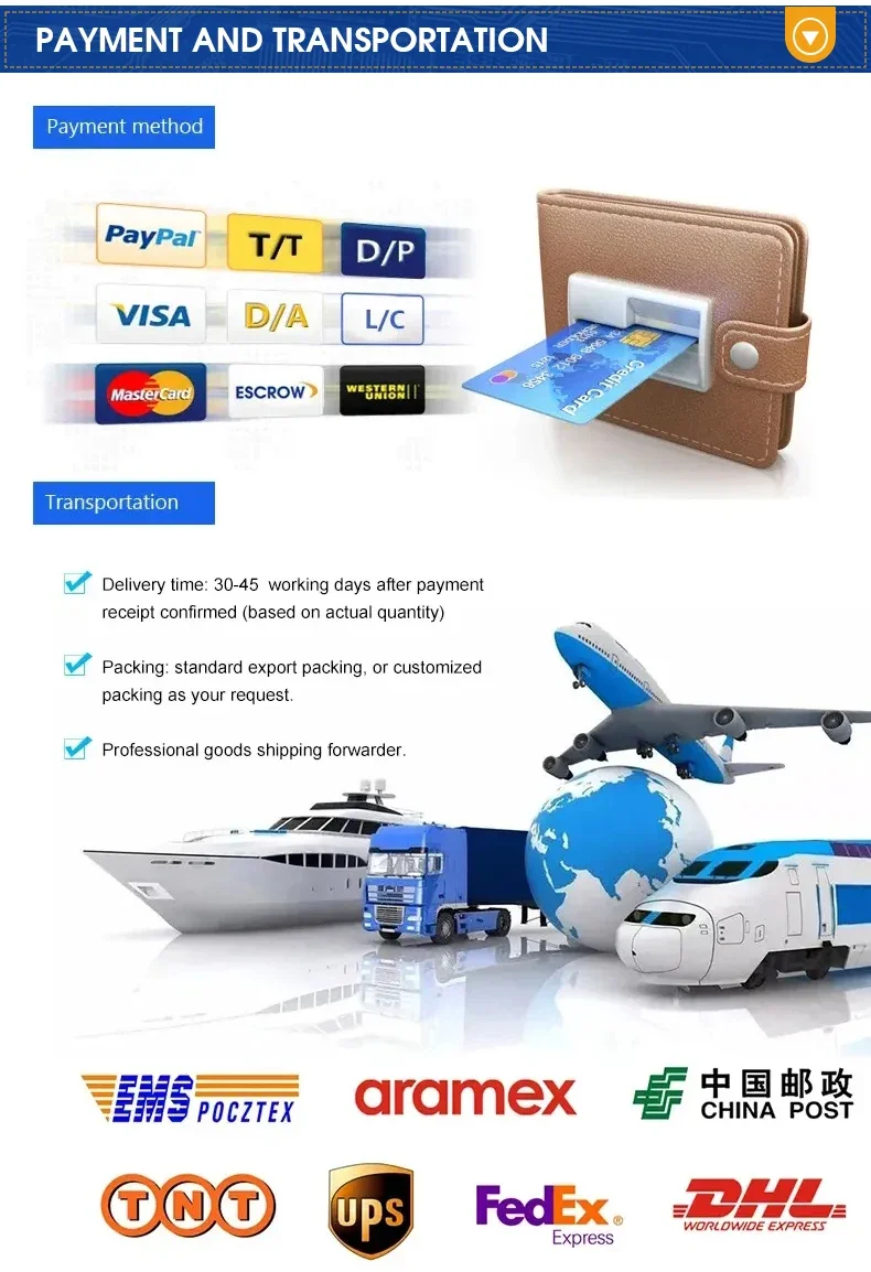Fedex, UPS, DHL, TNT, EMS, Sea, Land and Air transportation, etc.