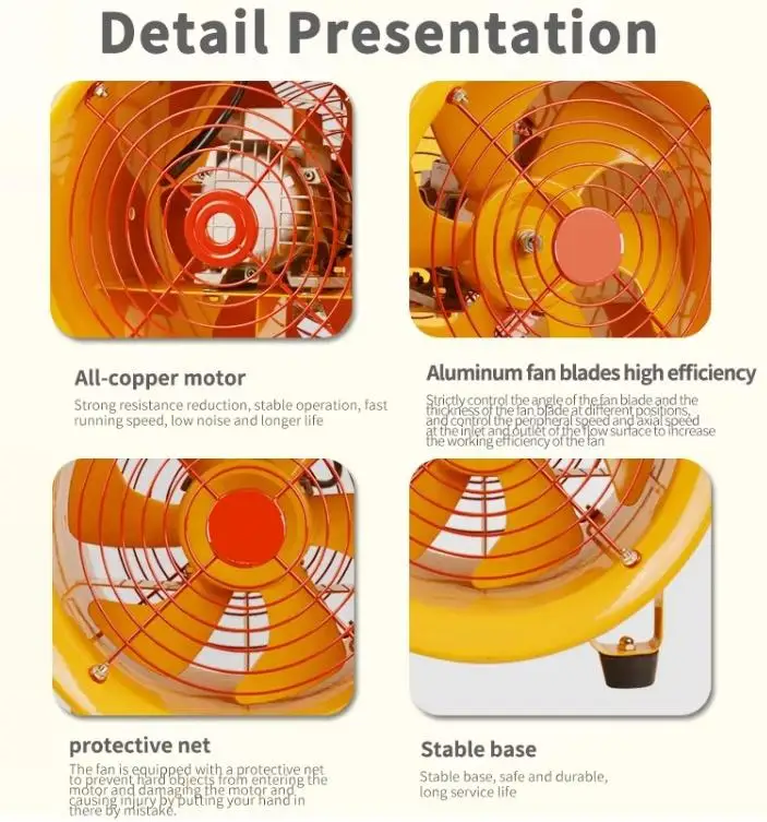 With low noise, low energy consuming and high explosion-proof quality, have man installation ways like wall mounted type, dusted type, post type and fixed type.