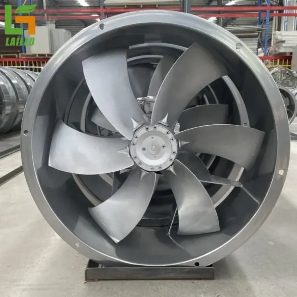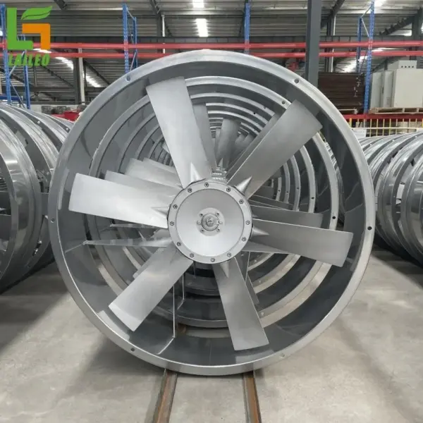 High-temperature axial flow fans are widely used in drying equipment for tobacco, wood, fruits and vegetables, and medicinal materials. The fan has a novel structure, beautiful appearance and superior performance. It has the characteristics of high temperature and high humidity resistance, large air volume, high wind pressure, low noise, high efficiency and energy saving, and convenient maintenance. This series of products is divided into 10 models according to the diameter of the impeller, which are arranged in sequence as NO. 3, 3.5, 4, 5, 5.6, 6, 7, 8, 9, and 10. required angle. This series of products adopts the direct connection structure in which the impeller is directly mounted on the motor shaft, and the peripheral speed of the impeller is matched with three rotation speeds under the allowable conditions: 2900r/min, 1450r/min, 960r/min. Due to different numbers, different diameters of impellers, adjustable blade installation angles, speed of spindle speed, etc., the air volume, air pressure and power consumption are also different.