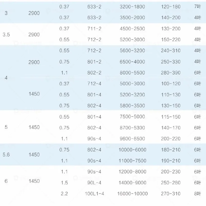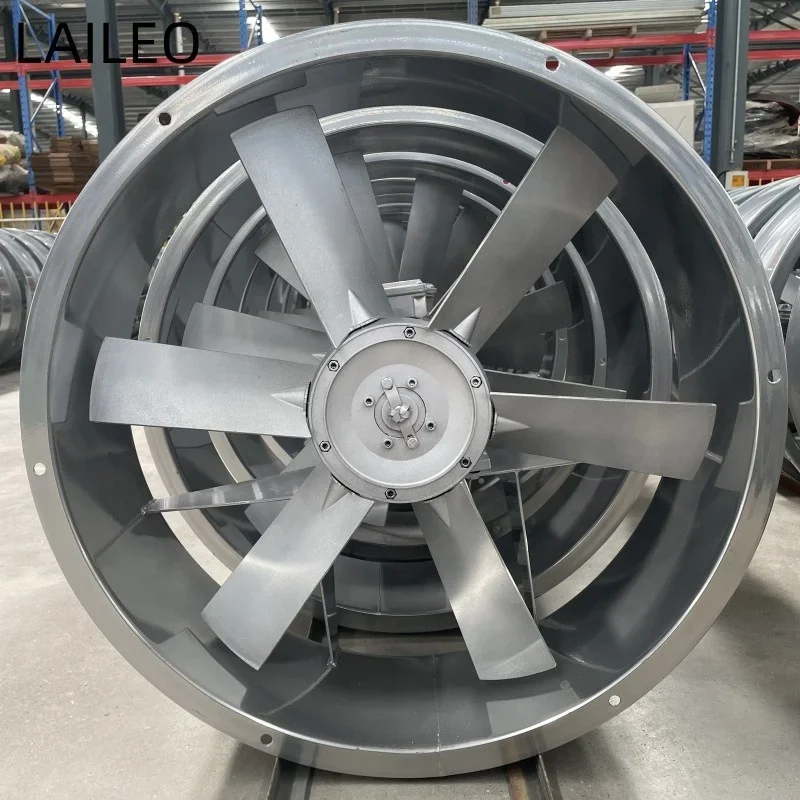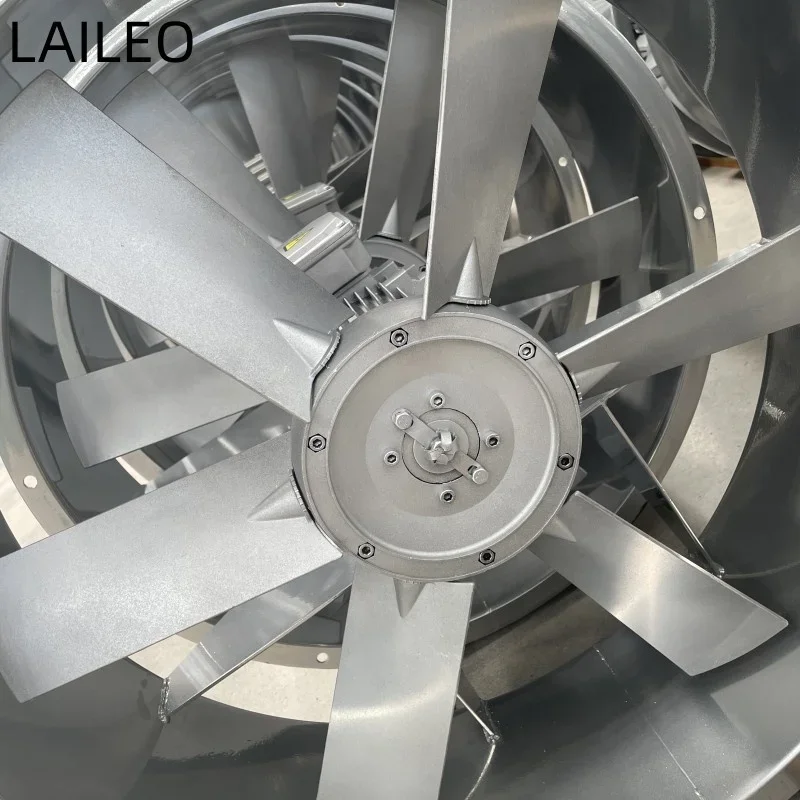 High-temperature axial flow fans are widely used in drying equipment for tobacco, wood, fruits and vegetables, and medicinal materials. The fan has a novel structure, beautiful appearance and superior performance. It has the characteristics of high temperature and high humidity resistance, large air volume, high wind pressure, low noise, high efficiency and energy saving, and convenient maintenance. This series of products is divided into 10 models according to the diameter of the impeller, which are arranged in sequence as NO. 3, 3.5, 4, 5, 5.6, 6, 7, 8, 9, and 10. required angle. This series of products adopts the direct connection structure in which the impeller is directly mounted on the motor shaft, and the peripheral speed of the impeller is matched with three rotation speeds under the allowable conditions: 2900r/min, 1450r/min, 960r/min. Due to different numbers, different diameters of impellers, adjustable blade installation angles, speed of spindle speed, etc., the air volume, air pressure and power consumption are also different.