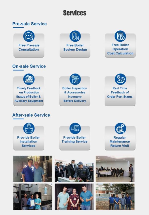 A: Yes, we do. Our engineer will go to customer’s factory site to give the user’s operator guidance and training during the period of commissioning until they are skilled in boiler operation.