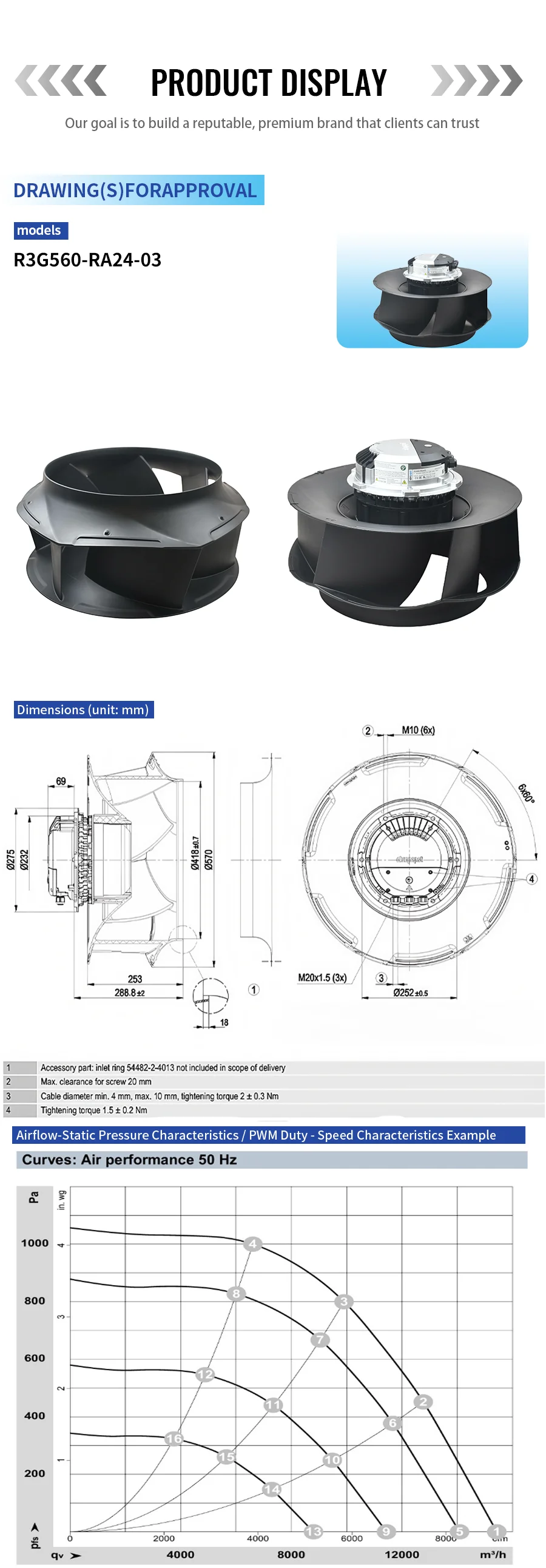 R3G560-RA24-03 German for Ebmpapst Wall-Mounted AHU Precision Air Conditioning Retrofit Unit 380-480V 3500W Centrifugal FanR3G560-RA24-03 German for Ebmpapst Wall-Mounted AHU Precision Air Conditioning Retrofit Unit 380-480V 3500W Centrifugal Fan