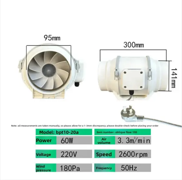 Silent Duct Axial Fan Control air duster Blower Ec Inline Duct Fan 220-240V Plastic Construction Roof Mount for Greenhouse Use