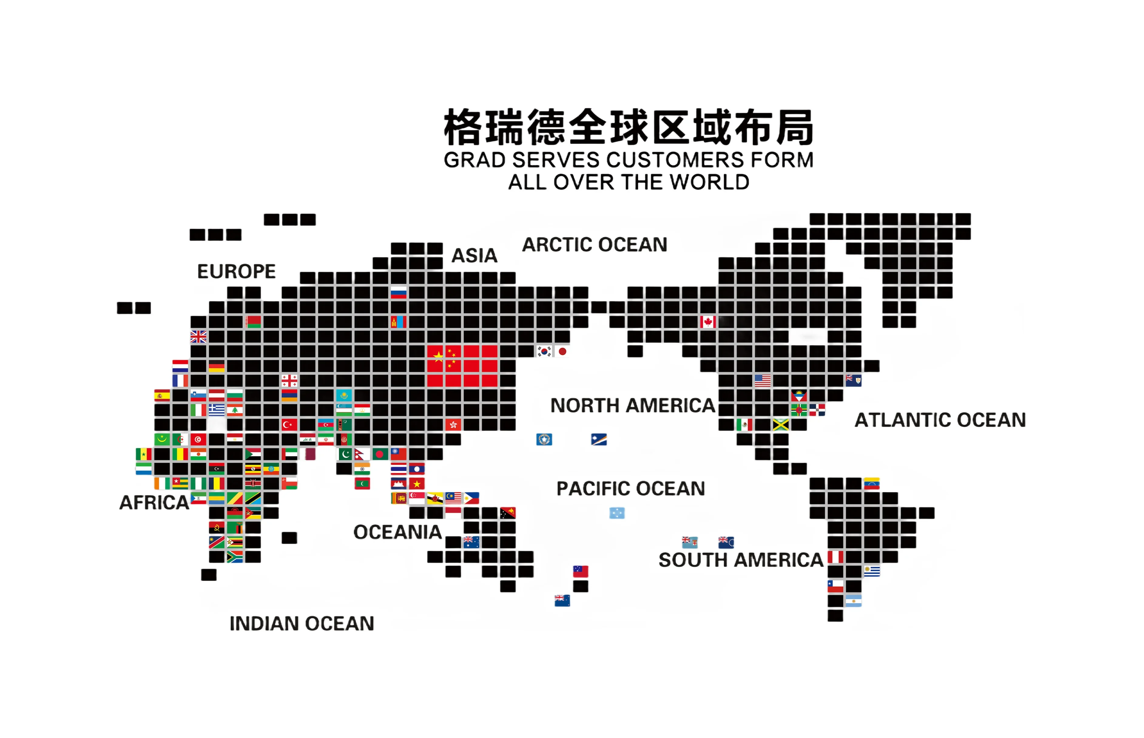 GRAD sales network covers over 100 countries and regions like America, Australia Indonesia, Malaysia, UAE, Thailand, Nigeria etc. and has established branch company in USA, and set up offices in Cambodia and Thailand to make overall layout of global market.