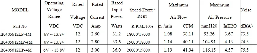 *Function type is optional. *The max. air flow and speed are measured in free air; max. air pressure is measured at close to zero air flow. *Noise is measured in anechoic chamber in free air, one meter from intake side. *All readings are typical values at rated voltage. *Specifications are subject to change without notice.