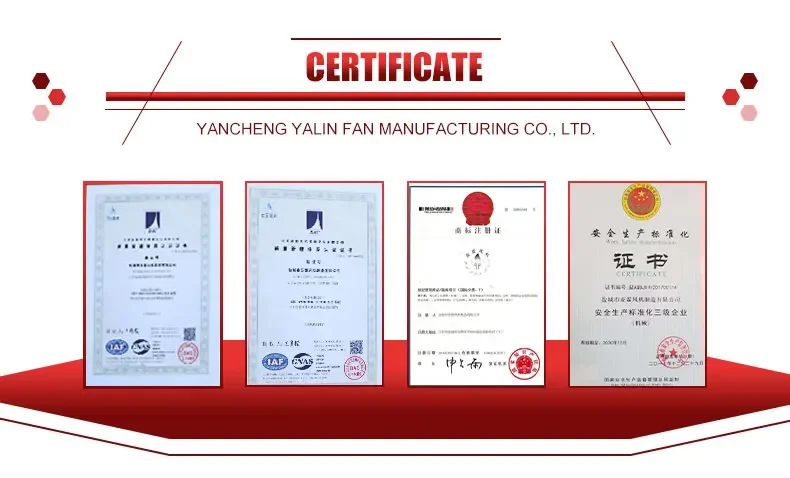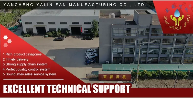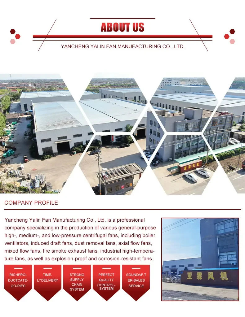 Q 1: WHAT TYPES OF FANS DOES YALIN FAN MANUFACTURING CO., LTDIN YANCHENG CITY PRODUCE? A1: YALIN FAN MANUFACTURING CO., LTD. IS A PROFESSIONAL COMPANY THATPRODUCES VARIOUS GENERAL HIGH, MEDIUM, AND LOW- PRESSURE CENTRIFU-GAL FANS, BOILER DRAFT FANS, INDUCED DRAFT FANS, DUST EXHAUST FANS.AXIAL – FLOW FANS, MIXED – FLOW FANS, FIRE -FIGHTING SMOKE EXHAUST FANSINDUSTRIAL HIGH -TEMPERATURE FANS, EXPLOSION -PROOF AND ANTI – CORROSION FANS.