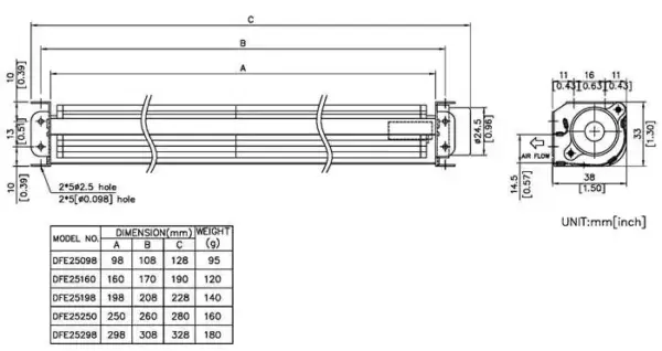 DFE25160 25mm 12V Small Cross Flow Fan