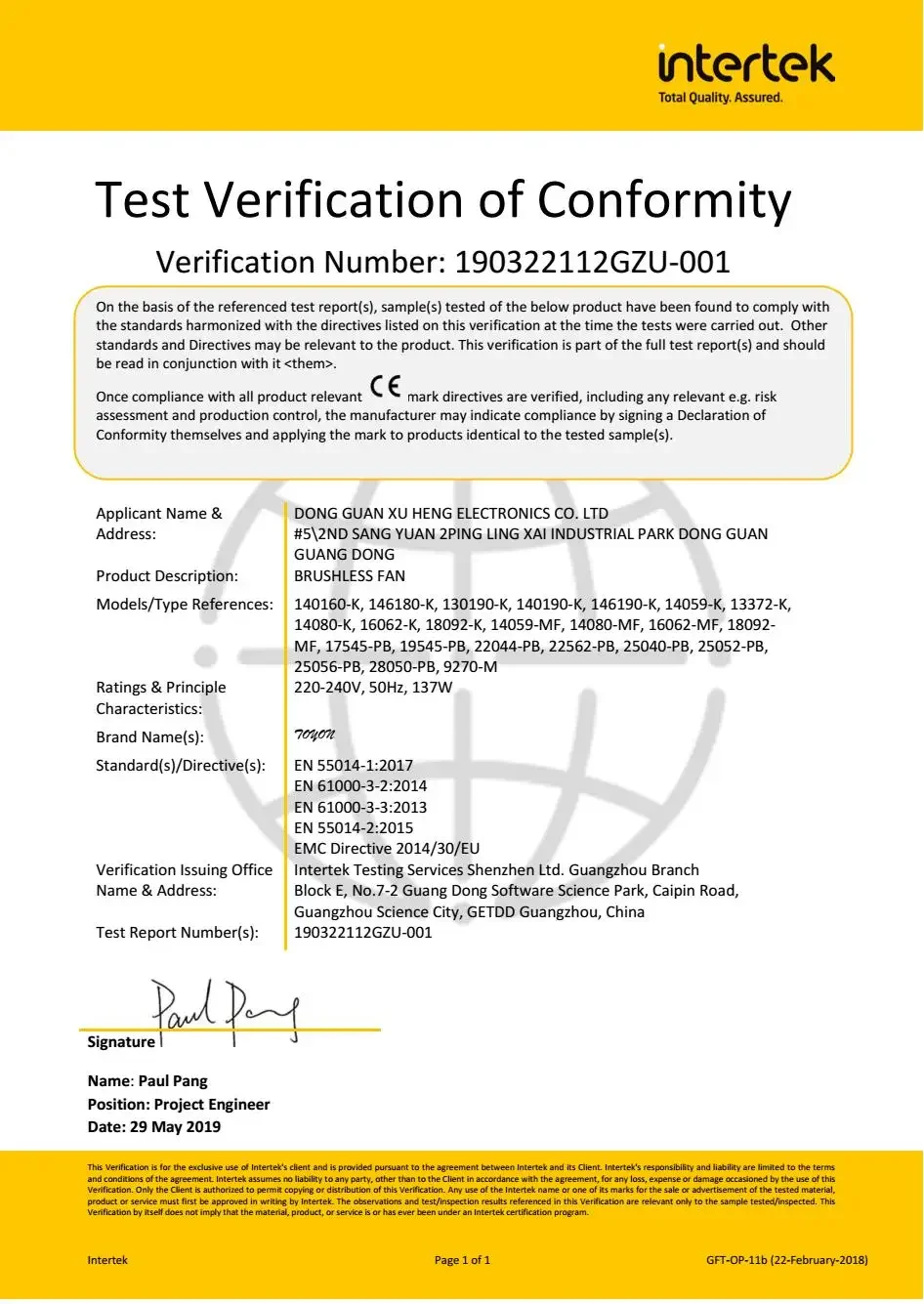 Dongguan Xuheng Electronic Co., Ltd(Toyon Fan) is a DC/EC Cooling Fans and DC/EC motor’s manufacturer ,we have 20 years experience in design and development integrated with Research, Design, Production and Sales; A Best Thermal Solution Provider in China