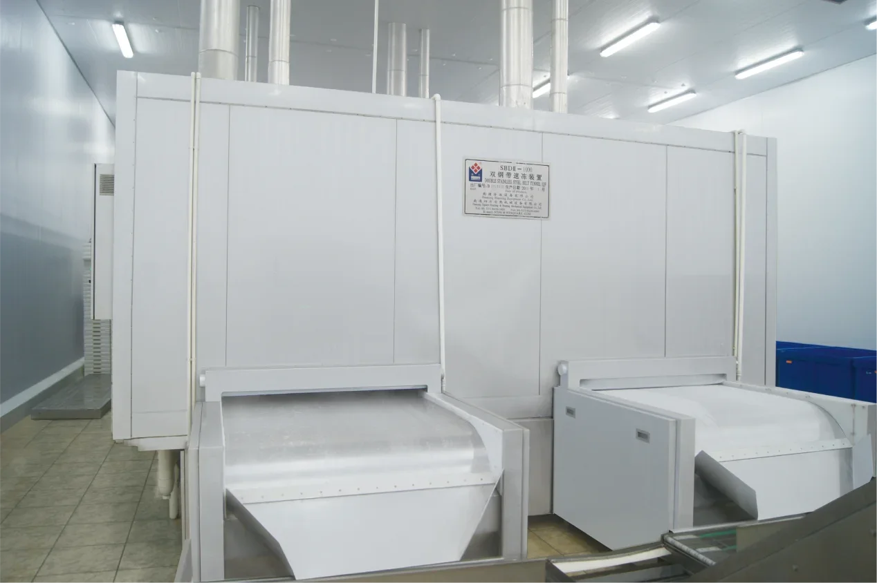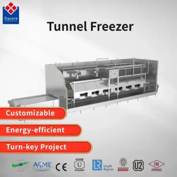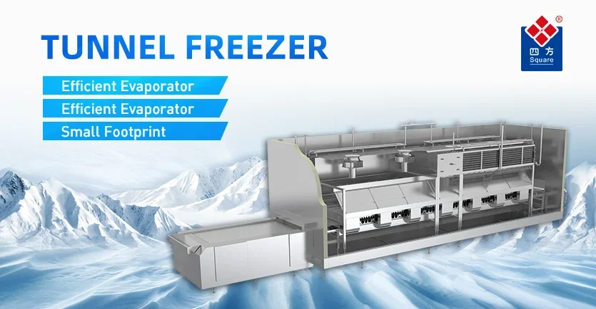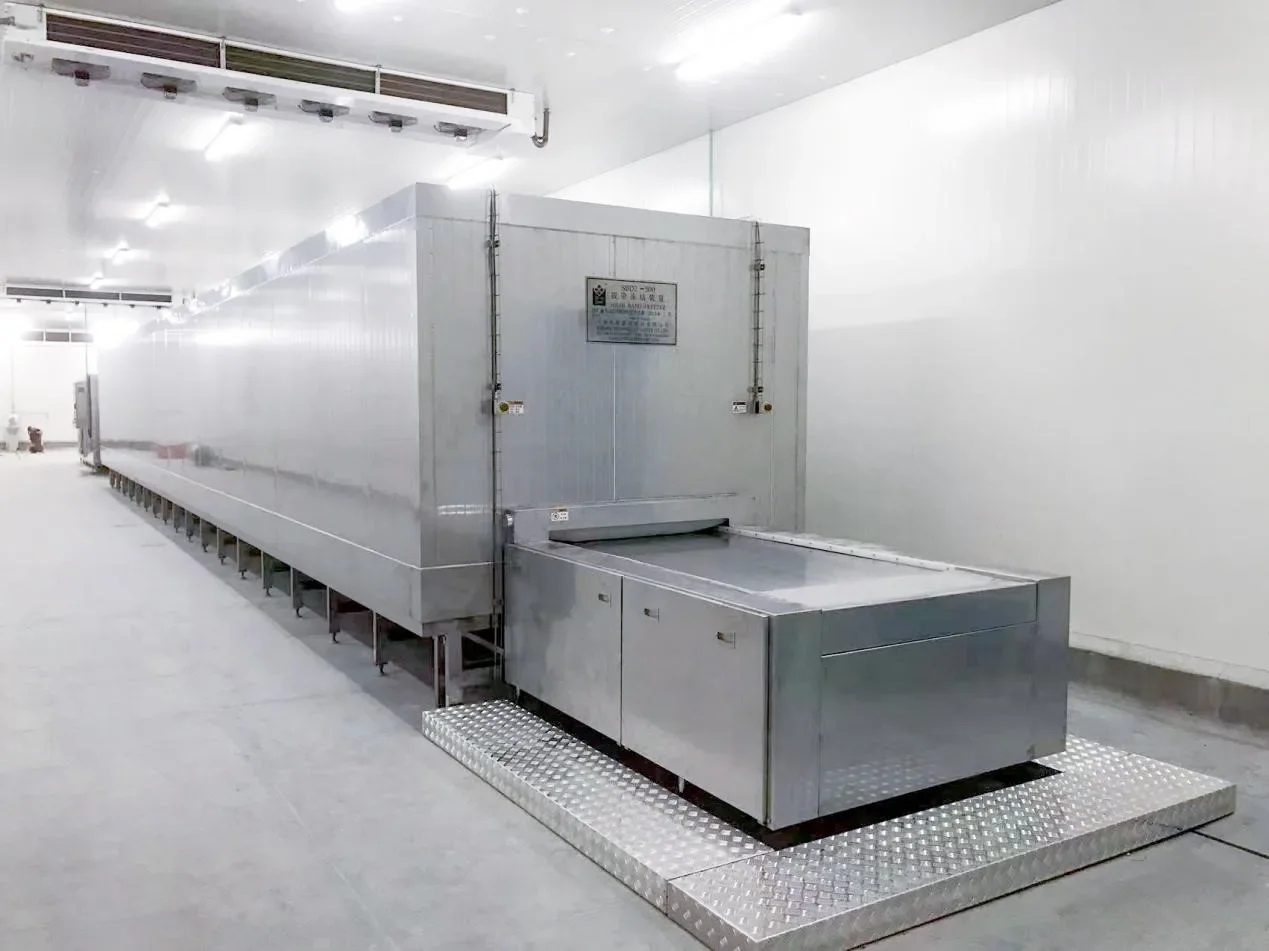 A tunnel freezer is an industrial machine that rapidly freezes food products by moving them on a conveyor belt through a long, insulated tunnel with powerful, circulating cold air (or cryogenic gases like liquid nitrogen). This fast freezing preserves food quality, texture, and nutrients by preventing large ice crystals from forming, making it ideal for individually quick freezing (IQF) items like fruits, vegetables, meats, and baked goods, ensuring they remain separate and high-quality after freezing.
