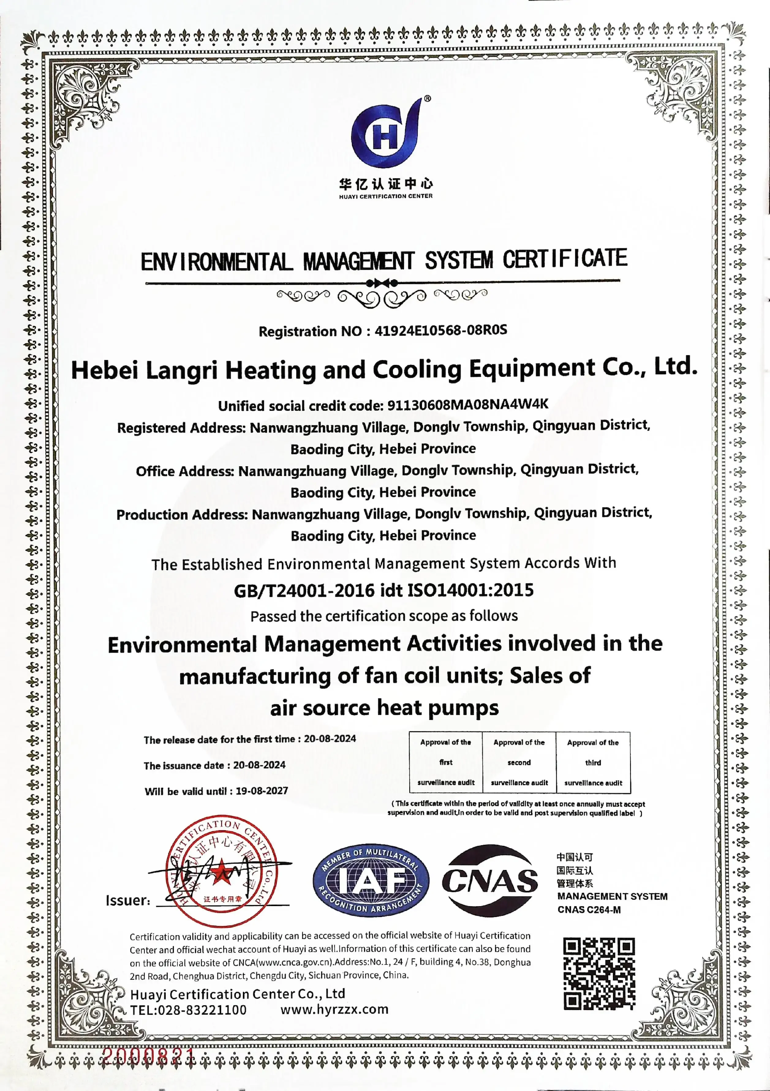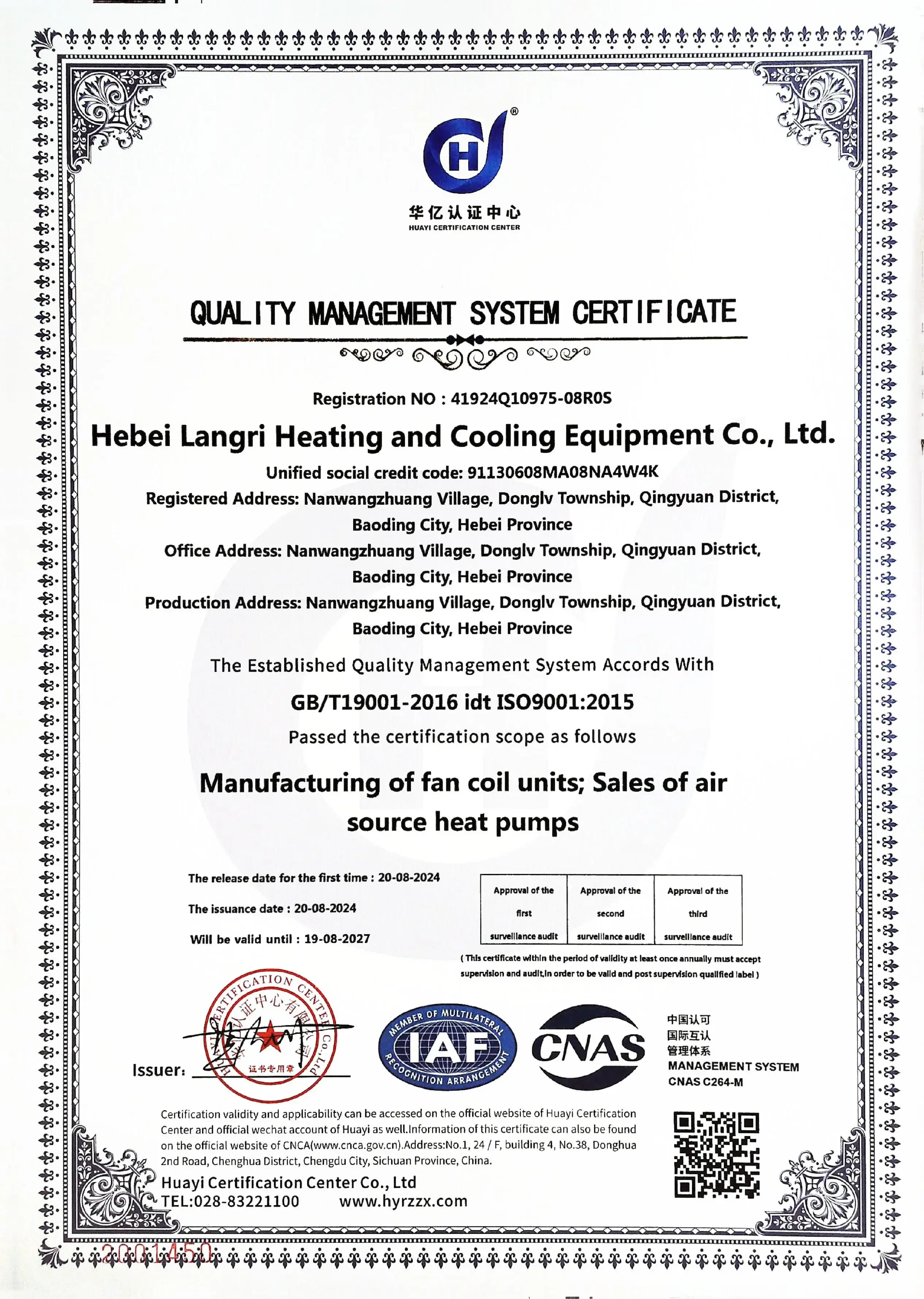 Hebei Langri Heating and Cooling Equipment Co., Ltd. is a manufacturer that integrates design, manufacturing, production and sales. Our company mainly provides fresh air exchange units, fan coil units, ventilation equipment, water air conditioning and other heating and cooling equipment. During this period, we have been focusing on the development of the heat pump industry and continuously absorbing advanced technologies from various regions, as well as representative cases of various projects.