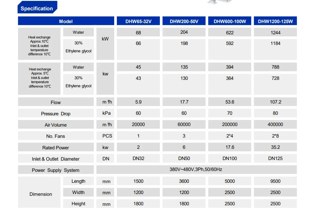 The dry cooler and supplementary cooling unit integrate a set of cold sources, which can adapt to various extreme weather conditions and ensure the outlet water temperature.
