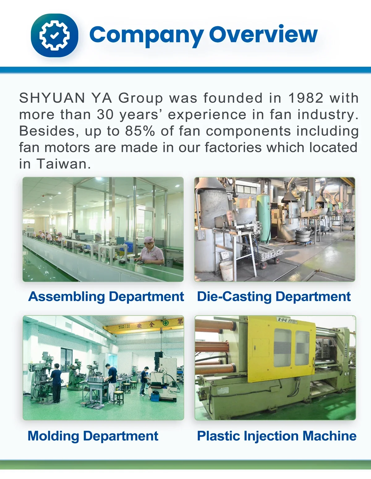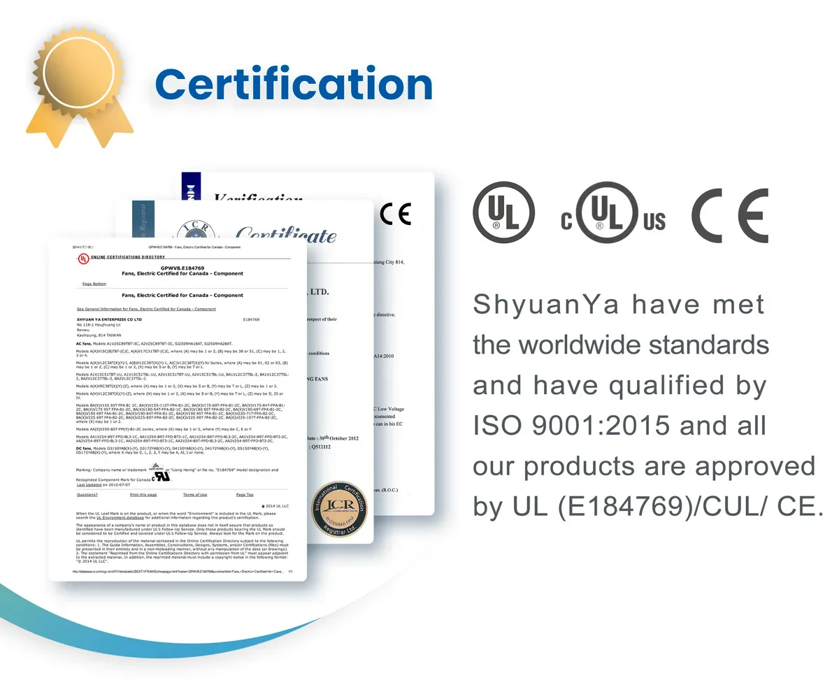 Q: What information do you need to provide in order to get a quotation?A: Generally, information about Size,Air Flow,Voltage of required fansis needed in order to select a right fan for you and provide you a quotation.Q: Can I have samples for testing before ordering products?A: Yes, we sincerely suggest that customers should have some samplesof required fans for testing because the truly performance of fans can befully demonstrated after testing is conducted.Q: Can I have a discount for the quoted price?A: The quoted price is based on annual usage quantity. If annual usagequantities increase, please provide the information to our sales.We will provide you a further discount.Q: What is the warranty of products?A: All of our products have 1 year warranty. Every product has its ownproduction code. This code is able to track the production time.Q: Could you print our company LOGO on the nameplate and package?A: Yes, we accept OEM orders.