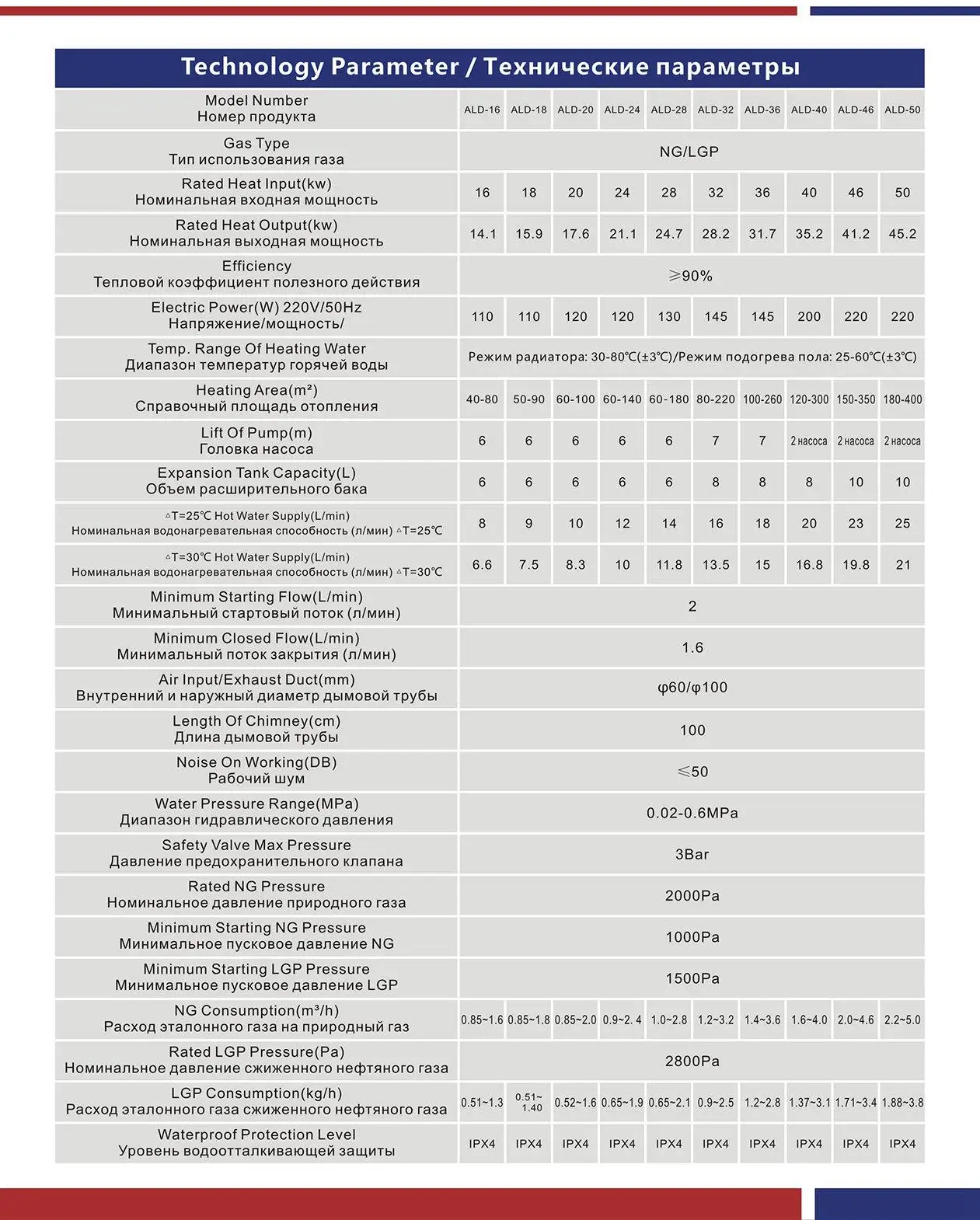 NG(2000Pa)/LPG(2800Pa)