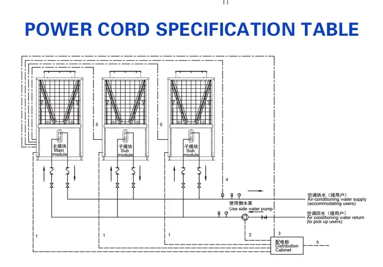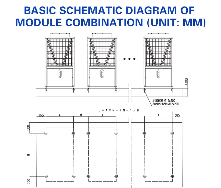Modular air-cooled heat pump unit, with multiple standards module unit at the scene of the installation together quickly and easily, centrally controlled by microcomputer, the unit according to the change of the air conditioning load, automatically adjust the number of compressor in operation, the output of generating units at any time to the highest efficiency in the best of cooperation. Even at low load output will not reduce the operating efficiency. Each refrigeration loop and each module run in an orderly manner independently of each other under the control of a computer controller. In case of failure of any circuit, it can be replaced by other circuits to maintain and repair the fault part while keeping the unit running. The unit adopts unique defrost control technology, which can completely defrost in the most adverse climate environment and maintain good heating performance. Winter temperatures are relatively low and no boiler or other heating conditions are particularly suitable.